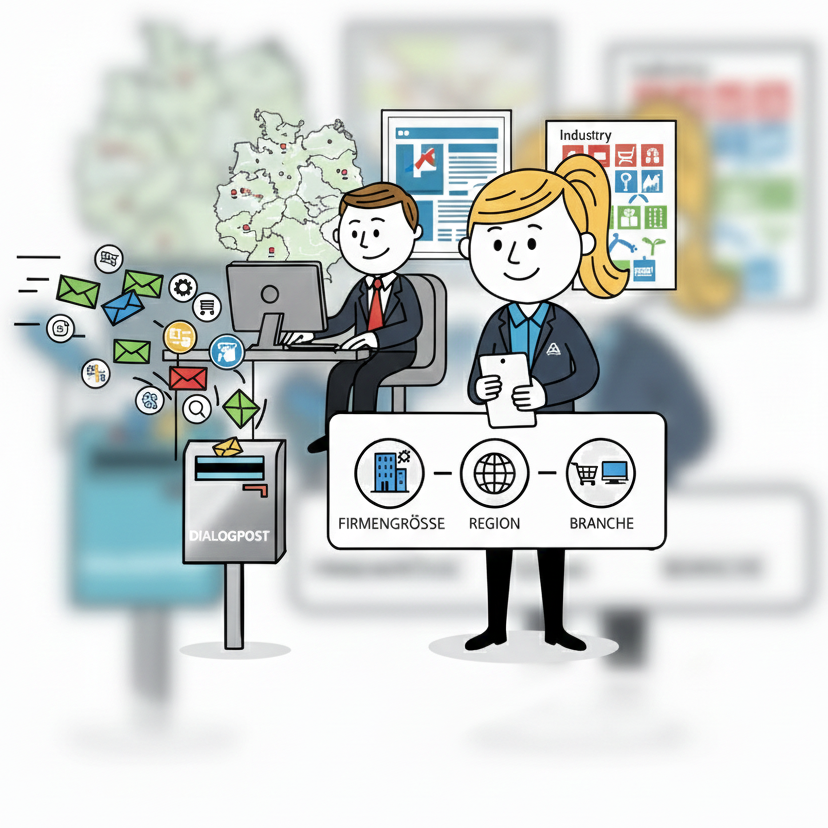 Sparen Sie Zeit & Nerven.Überlassen Sie uns die Komplexität in der Akquise von neuen Firmen. Mt unserer B2B Flyerverteilung machen wir den Prozess für Sie so einfach und sicher wie möglich. Sie müssen sich nicht durch komplexe Formulare und unübersichtliche Klickstrecken kämpfen. Hier der Ablauf:
