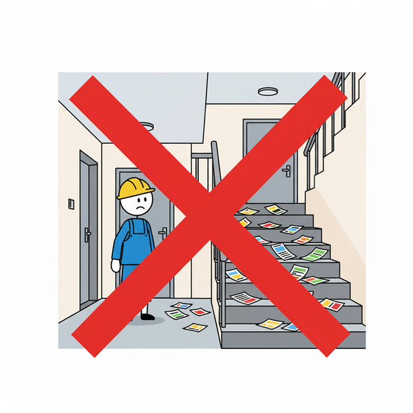 Verteilteams sorgen für eine zuverlässige und gewissenhafte Einbringung Ihrer Flyer in die Briefkästen – selbstverständlich unter Beachtung des "Bitte keine Werbung"-Hinweises. (Ausnahme