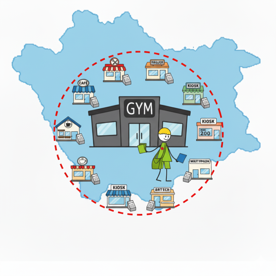Mit unserem Premium-Paket verteilen wir in die Briefkästen der unmittelbaren Umgebung Ihres Fitnessstudios. Zusätzlich integriert unser Verteilteam auch eine Auslage an diversen Lokationen wie Cafe`s, Bäckereien, Späti`s etc..Hierbei fragen unsere Verteler, ob Ihre Fitness-Flyer ausgelegt werden darf. Wenn "Ja" lassen wir im durchschnitt ca. 20 Stück zur Auslage liegen.